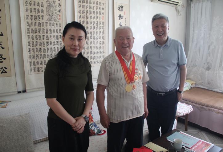 領(lǐng)導(dǎo)們一行來到“光榮在黨50年”離休老黨員陳維崗家中,與其親切交談,詳細(xì)了解他的健康狀況和生活情況。集團(tuán)公司黨委書記、董事長(zhǎng)郝東輝在送上慰問金和黨史學(xué)習(xí)教育口袋書的同時(shí),親手將熠熠生輝的“光榮在黨50年”紀(jì)念章佩戴在老人胸前,向他致以節(jié)日的問候,并希望陳老在保重身體、安享晚年的同時(shí),能夠繼續(xù)關(guān)心和支持集團(tuán)公司發(fā)展。