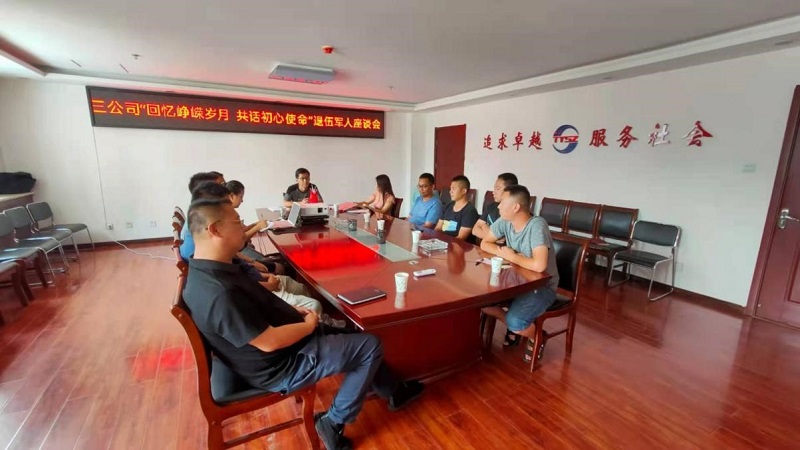8月1日,三公司召開“回憶崢嶸歲月 共話初心使命”退伍軍人座談會。共11人參加了會議。會上,大家一同觀看了視頻《人民軍隊的擔當》。大家分別介紹自己的軍旅生涯,并結合自己的工作實際,就如何發揚軍人風采、不忘初心、堅持釘釘子精神暢所欲言。經理栗建軍、黨支部書記郭娟娟向退伍軍人們致以節日祝賀,勉勵大家要在工作中帶頭弘揚正氣,踐行“退伍不褪色,退役不退志”的錚錚誓言。