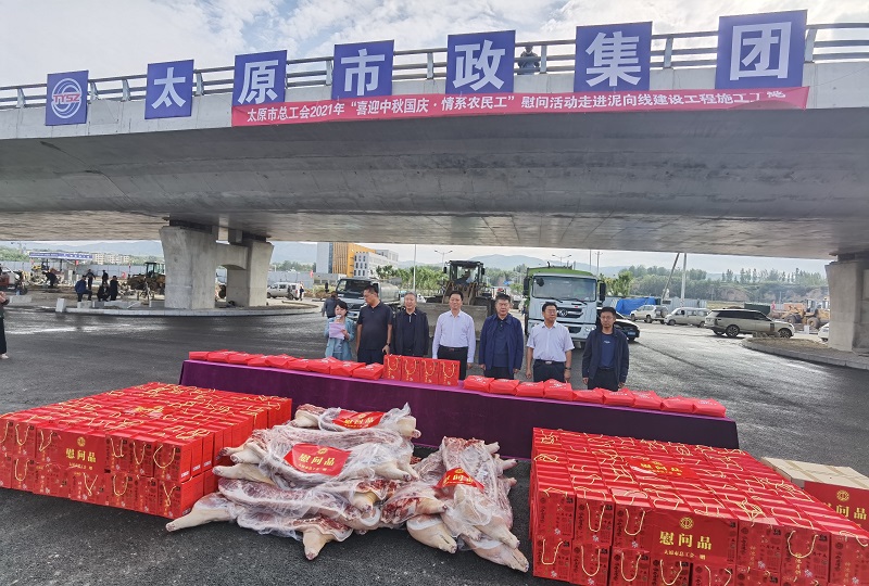 活動中,太原市總工會領導一行先后前往泥向線建設工程施工五標段、南內環街東延建設工程施工現場,與廣大施工人員進行親切交談,了解大家的工作和生活情況,并送去月餅、豬肉、口罩等慰問品。