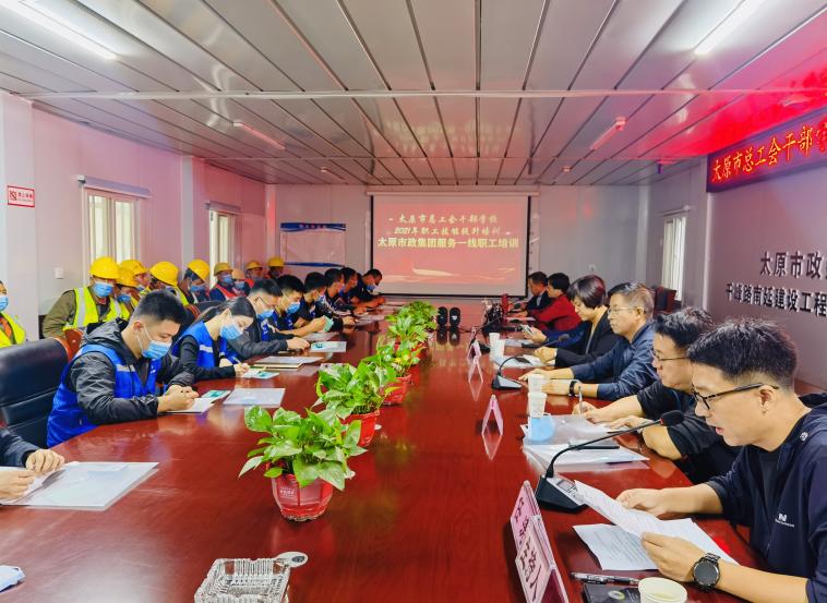 9月23日,太原市總工會干部學校2021年職工技能提升培訓太原市政集團服務一線職工培訓開班儀式在千峰路南延建設工程雨水泵站及調蓄池施工工程項目部舉行。太原工會干部學校副校長馬曉紅,集團公司黨委委員、監事會主席、工會主席馮忠,總工程師高鴻,副總經理展志剛參加了開班儀式。