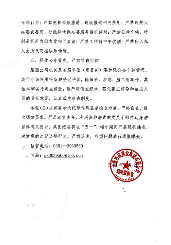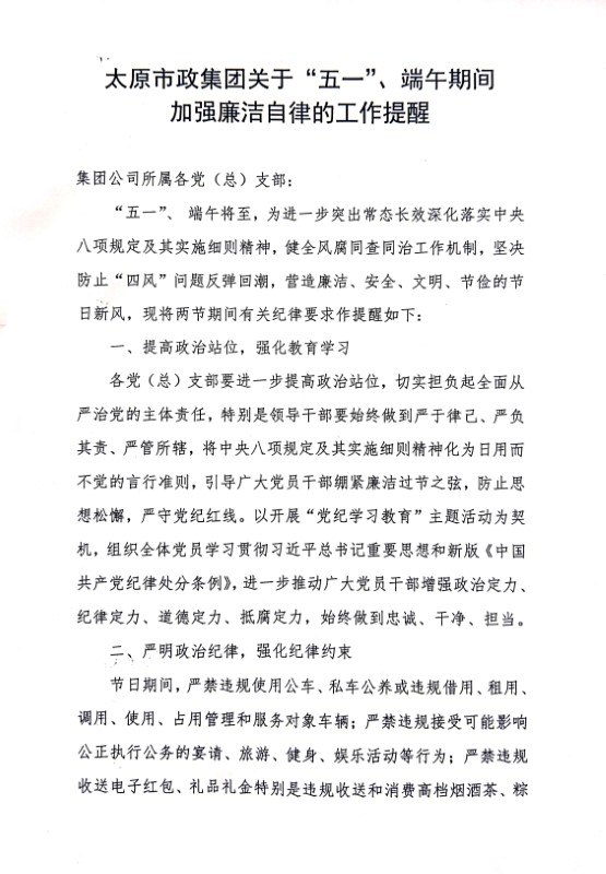太原市政集團關于“五一”、端午期間加強廉潔自律的工作提醒