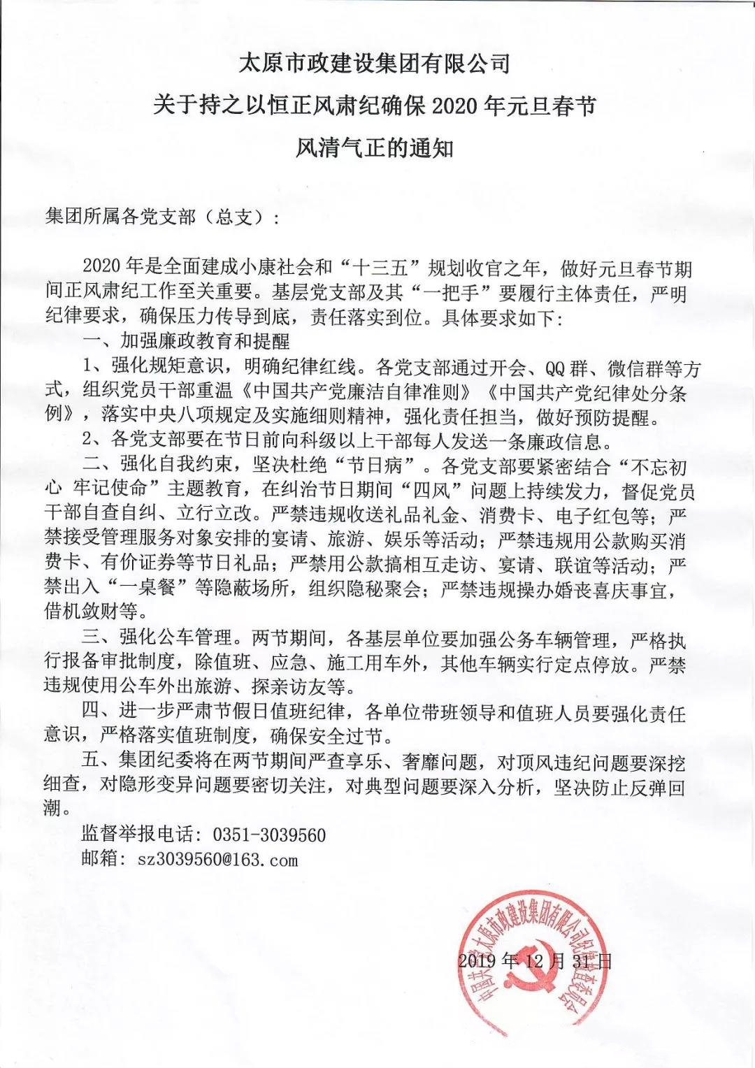 持之以恒正風肅紀確保2020年元旦春節風清氣正的通知