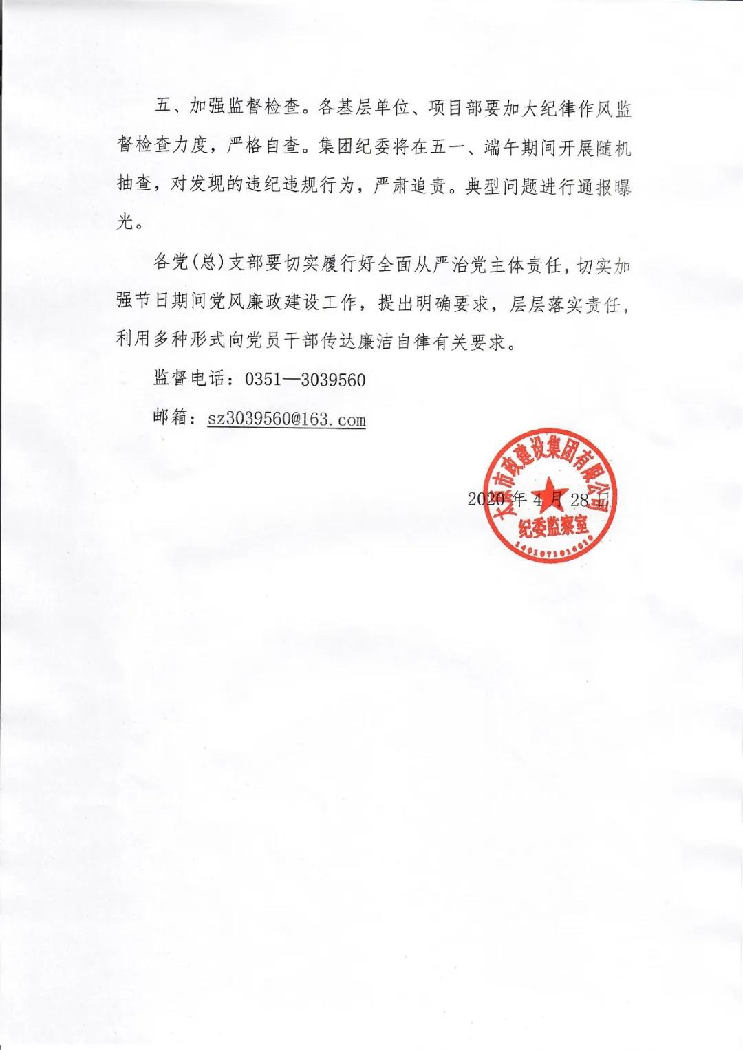 太原市政集團關于“五一”、端午期間加強廉潔自律工作的通知