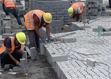 全體參建人員匠心獨運、精雕細刻,正在全力推進鋪裝扇形花崗巖丁石的施工進度,力爭早日將五一廣場“新容”展現在市民面前。