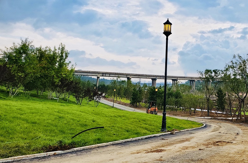 該工程屬于汾河四期治理美化工程的組成部分,要與園林、道路等同步施工,為呈現汾河美化整體效果,施工中時常出現設計變更情況,項目部結合施工實際,按照圖紙推進施工。在三標段施工中,設計要求將已做好燈基礎的草坪燈改為亮度更高、基礎更大的庭院燈,項目部組織施工人員在不破壞原有路燈基礎的情況下,再次擴建開挖新的路燈基礎,并在搭建更多模具的基礎上,通過澆筑混凝土保持其安全與穩固。同時,因部分路段要增加休息平臺,項目部將已做好的管線破除,重新設置休息平臺的末端管線接頭,并嚴格按照設計規劃,改為繞平臺一圈后再做管線與基礎,以確保汾河景觀的整體呈現效果。