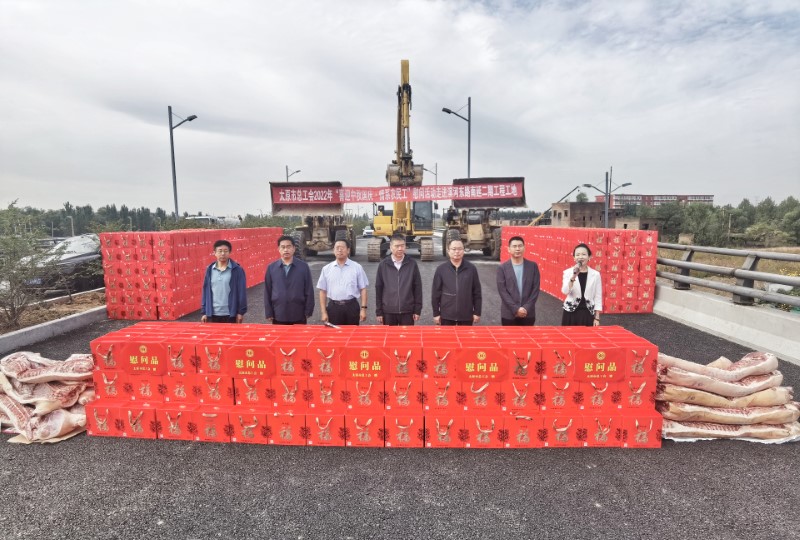 活動中,太原市總工會領導來到施工現場與一線施工人員進行親切交談,了解施工和生活情況,并為大家送來了月餅、豬肉等慰問品。