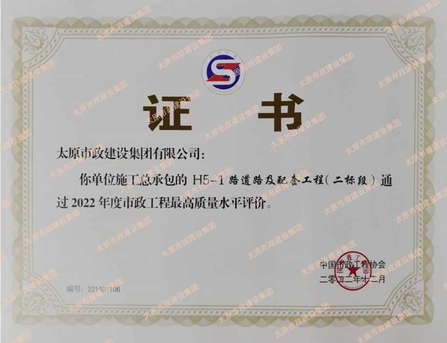 近日,集團公司承建的H5-1路道路及配套工程(二標段)通過了2022年度市政工程最高質(zhì)量水平評價。