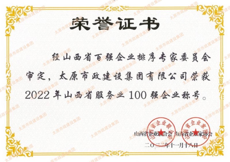 近日,集團公司榮獲山西省企業(yè)聯(lián)合會和山西省企業(yè)家協(xié)會頒發(fā)的“山西省功勛企業(yè)”和“山西省100強”(排名第45位)“山西省服務業(yè)100強”榮譽稱號。集團公司黨委副書記、副董事長、總經(jīng)理溫慧武榮獲“太原市功勛企業(yè)家”榮譽稱號。