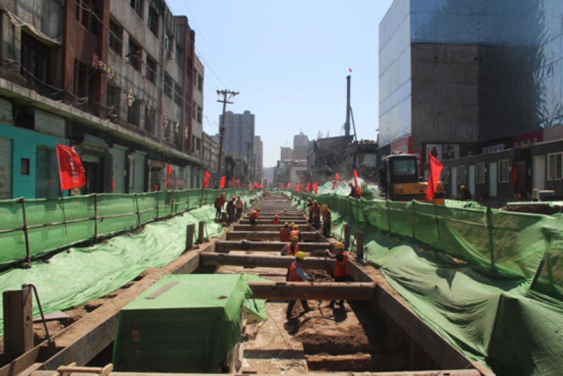 解放路改造工程施工二標段北起東三道巷,南至迎澤大街,道路長約2.8公里,由二公司負責承建。該工程涉及道橋建設、線纜入地、風貌整飾、設施完善、歷史文化保護傳承等方方面面。因施工位于主城區,施工環境復雜,涉及多家施工隊伍同時作業,項目部多方聯系、加強管理,通過與地鐵、管線等施工方溝通,合理分配施工節點,動態管理各個環節,利用短短一個半月時間順利完成了整體管線施工任務,為后續施工打下堅實基礎。管線施工中,項目部采取人工挖設探坑,明確管線具體位置,再通過打設鋼板樁+高壓旋噴樁的形式,加固兩側土體,確保開挖作業順利進行,同時,項目部調整開挖工作面長度,因解放路管線眾多需在保護安全的前提下進行施工,項目部一改以往數十米一個開挖面的傳統方法,每間隔五米或十米開挖一個工作面,確保管線的正常運行,圓滿完成了施工任務。經過6個多月的緊張施工,解放路改造工程如期竣工通車。該工程是太原市第一條集地面道路交通和地下軌道交通同步推進的綜合性改造工程。全體施工人員弘揚“市政”精神,展現“鐵軍”風采,優質高效完成施工任務,為全市人民交上了一份完美答卷,為再現“錦繡太原城”盛景貢獻了新時代市政力量。