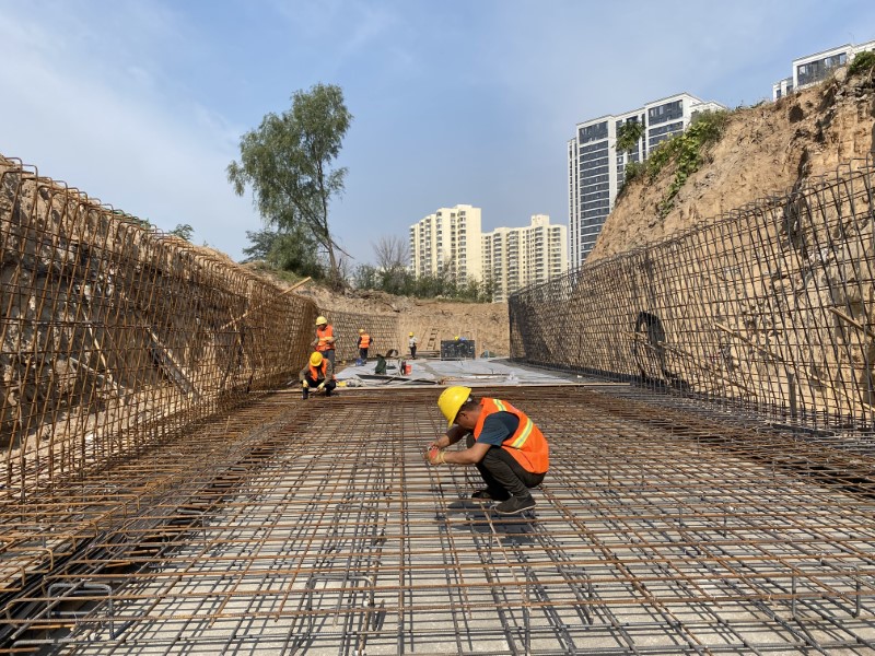 10月4日清晨,一公司承建的亞日街道路建設(shè)工程施工現(xiàn)場一片繁忙景象,全體施工人員堅(jiān)守崗位,全力以赴投入到緊張施工中,力求高質(zhì)量完成工程任務(wù)。該工程場地狹窄,周邊建筑物密集,且雨污水管線需下穿現(xiàn)狀國防光纜、電力、燃?xì)狻崃Φ染C合管線。上午8點(diǎn),施工現(xiàn)場各類機(jī)械轟鳴運(yùn)轉(zhuǎn),工程車輛忙碌穿梭,項(xiàng)目部嚴(yán)把各道工序,守牢細(xì)節(jié)質(zhì)量關(guān),針對管道檢查井埋深均超過5米的實(shí)際情況,施工人員采用倒掛法開展拖拉管工作井施工,利用分層澆筑振搗密實(shí)方法,當(dāng)?shù)谝还?jié)混凝土達(dá)到規(guī)定強(qiáng)度后,便拆除模板開展第二節(jié)倒掛井壁施工,如此循環(huán)直至達(dá)到設(shè)計(jì)井底,目前已完成工作井、接收井高壓旋噴樁支護(hù)工作,正在進(jìn)行接收井冠梁及一模澆筑。全體施工人員爭分奪秒、堅(jiān)守一線,以時(shí)不我待、使命必達(dá)的決心和干勁,為城市建設(shè)添磚加瓦。