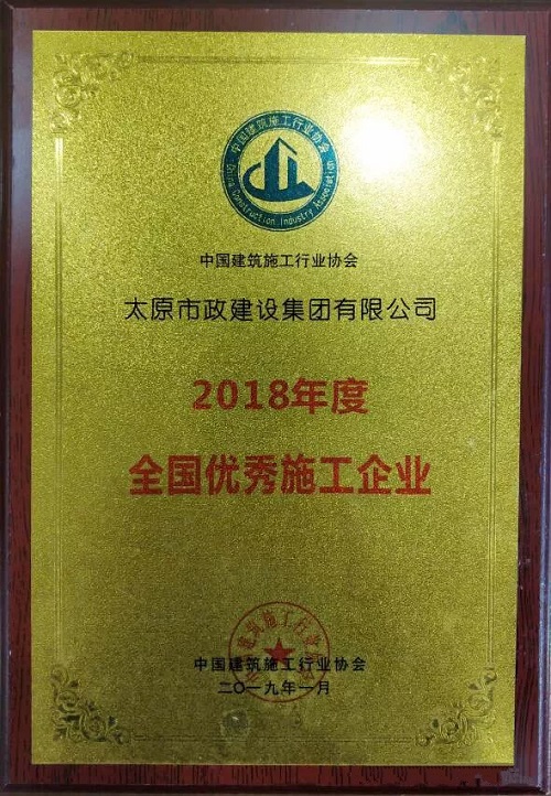 太原市政建設集團有限公司榮獲“2018年度全國優秀施工企業”榮譽稱號