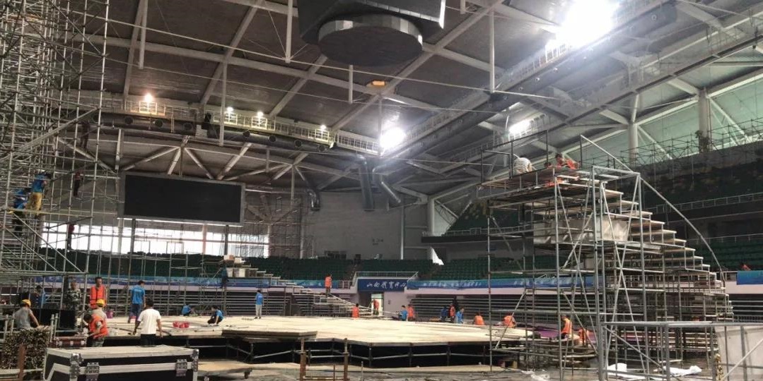 8月9日至11日,四公司先后組織60余名參建人員前往山西省奧體中心體育館與山西體育中心參與搭建和拆裝“二青會(huì)”閉幕式舞臺(tái)。由于時(shí)間緊,任務(wù)重,四公司迅速抽調(diào)參建隊(duì)伍馬不停蹄地趕赴現(xiàn)場(chǎng),全體參建人員爭(zhēng)分奪秒、協(xié)同作戰(zhàn),搬運(yùn)燈光設(shè)備、搭設(shè)舞臺(tái)地板、安裝電纜與舞臺(tái)腳手架……確保時(shí)間利用最大化,用行動(dòng)詮釋市政“速度與激情”。經(jīng)過3天的努力奮戰(zhàn),圓滿完成了閉幕式舞臺(tái)的搭建與拆裝任務(wù)。