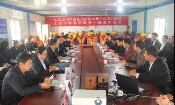 10月23日,太原市總工會服務供給側改革企業職工培訓定點單位太原市政集團服務一線巡回培訓開班儀式在四公司水馬路工地舉行。市總工會黨組成員、副主席汪倫,太原工會干部學校校長張全民,干校工會主席左蓮梅,太原市政集團黨委委員、董事、副總經理溫慧武,黨委委員、監事會主席、工會主席馮忠,總工程師高鴻出席。