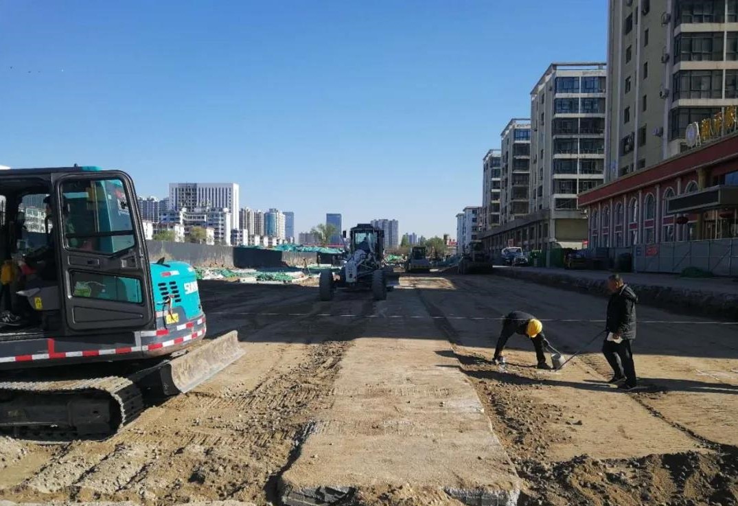 四公司軍民路(學(xué)府街——晉陽街)道路改造工程中許坦西街至師范街段正在進行底基層水穩(wěn)鋪設(shè)
