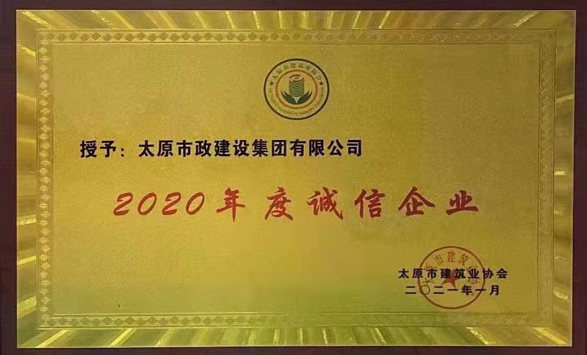 2021年1月26日,集團公司被太原市建筑業協會評選為“2020年度誠信企業”。